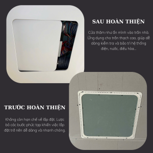 Cửa thăm GMIV được đăng ký sáng chế và bảo hộ kiểu dáng công nghiệp, có thể tùy chỉnh kích thước theo yêu cầu, giao hàng nhanh chỉ trong 4 giờ. Với sản lượng 1.500 sản phẩm/ngày và bảo hành chính hãng 2 năm, GMIV tự tin mang đến giải pháp cửa thăm trần thạch cao cao cấp, bền đẹp và tiện dụng.