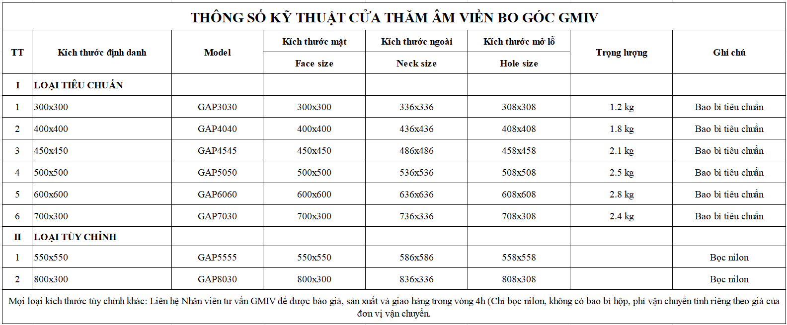 CỬA THĂM ÂM VIỀN BO GÓC GMIV